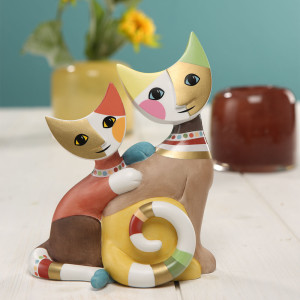 Rosina Wachtmeister lives in the small and old town of Capena, located in the north of Rome where many cats are living. The locals call the historical center the "rocca" because this part of the town was a refuge in the middle ages. Today, the old sanctuary is Rosina Wachtmeister's charming home. With her friends, the artist has renovated a former church called San Michele Archangelo, where she still lives and works today. Rosina loves cats. They became a kind of symbol for her art. In partnership with Goebel, she created a series of playful cat figurines in hand-decorated porcelain.