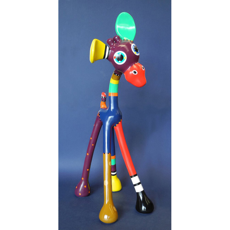 She mainly creates abstract paintings and original sculptures. Her art clearly shows her fascination for animals such as dogs, cats and giraffes, with a clear preference for bright colors. Her work highlights unusual colors and shapes that she observes in certain plant and animal species in nature from which she draws her inspiration. From the beginning, she wanted her art to be colorful and joyful. Her creations are invitations to stop and enjoy the moment, to smile at the happy moments.