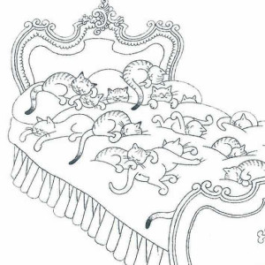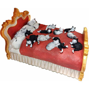 Cats on bed - Dubout's cat sculpture