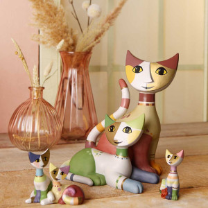 Rosina Wachtmeister lives in the small and old town of Capena, located in the north of Rome where many cats are living. The locals call the historical center the "rocca" because this part of the town was a refuge in the middle ages. Today, the old sanctuary is Rosina Wachtmeister's charming home. With her friends, the artist has renovated a former church called San Michele Archangelo, where she still lives and works today. Rosina loves cats. They became a kind of symbol for her art. In partnership with Goebel, she created a series of playful cat figurines in hand-decorated porcelain.