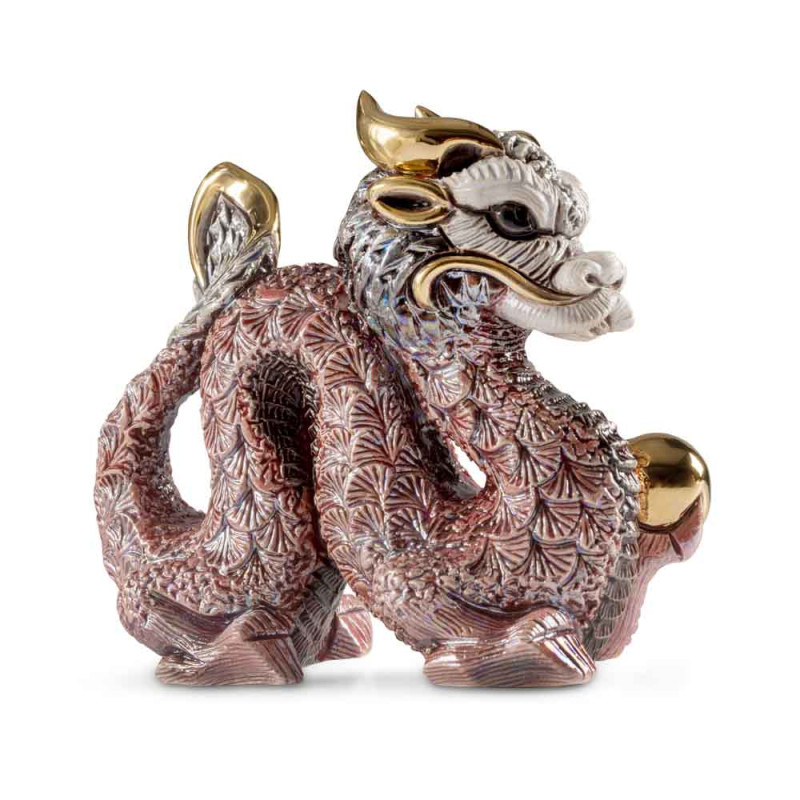 In Chinese culture, the dragon symbolizes wisdom, power and luck. This magnificent statuette was made entirely by hand and has touches of real gold. Also available in copper tones.