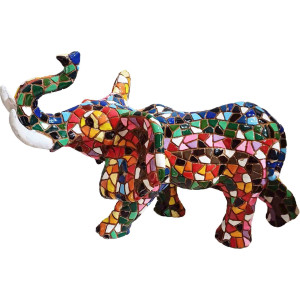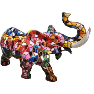 This multicolored mosaic elephant figurine was created by hand in Barcino spanish workshop. Beautiful colours and traditional Catalan style are combined to make a good quality creation.
