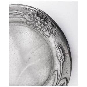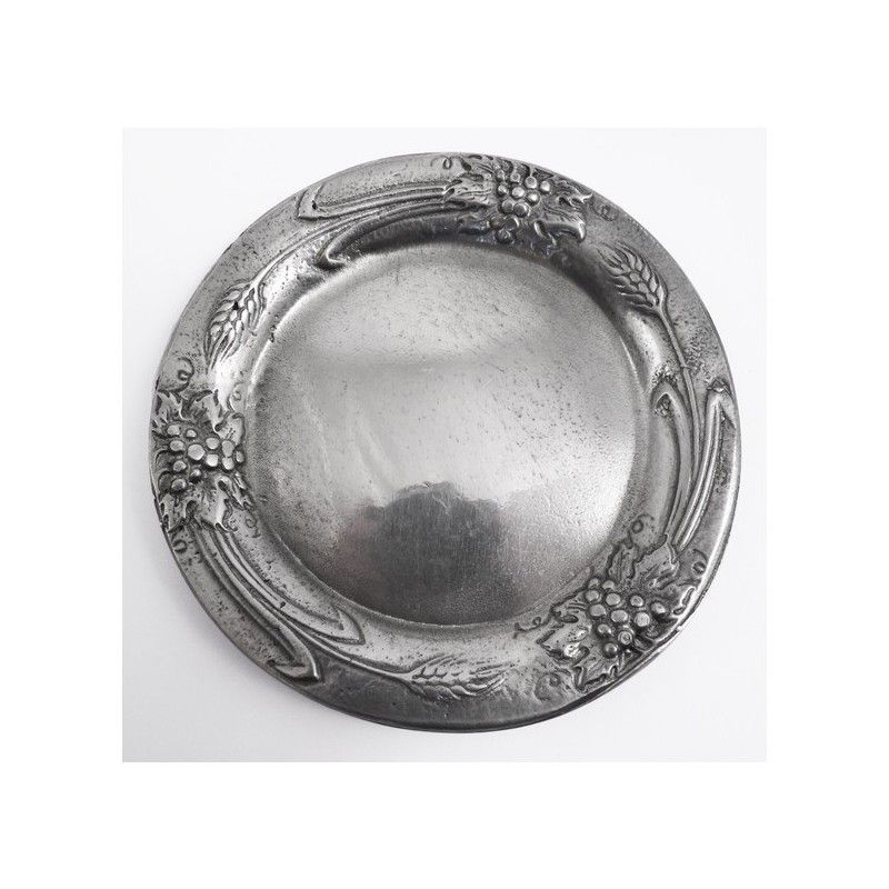 This pewter plate decorated with ears of corn and bunches of grapes was made by one of the last tin workshops in France.