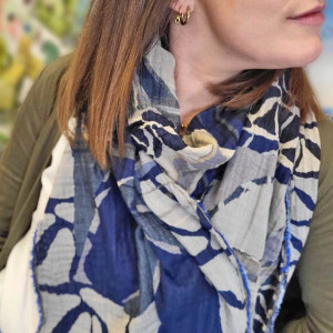 This pretty scarf, woven on a loom in Charlieu (a small town in the northern Loire region of France), is inspired by the art of mosaic and stained glass. It is made from organic cotton.