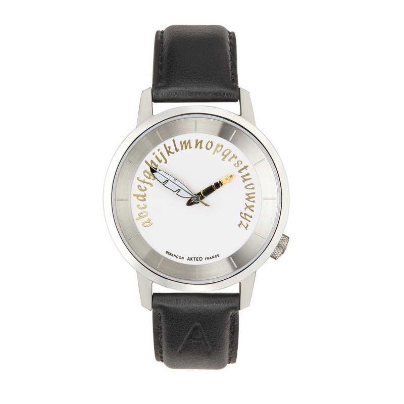 Akteo showcases the theme of writing through this watch whose pen, feather and lettering motifs speak for themselves.