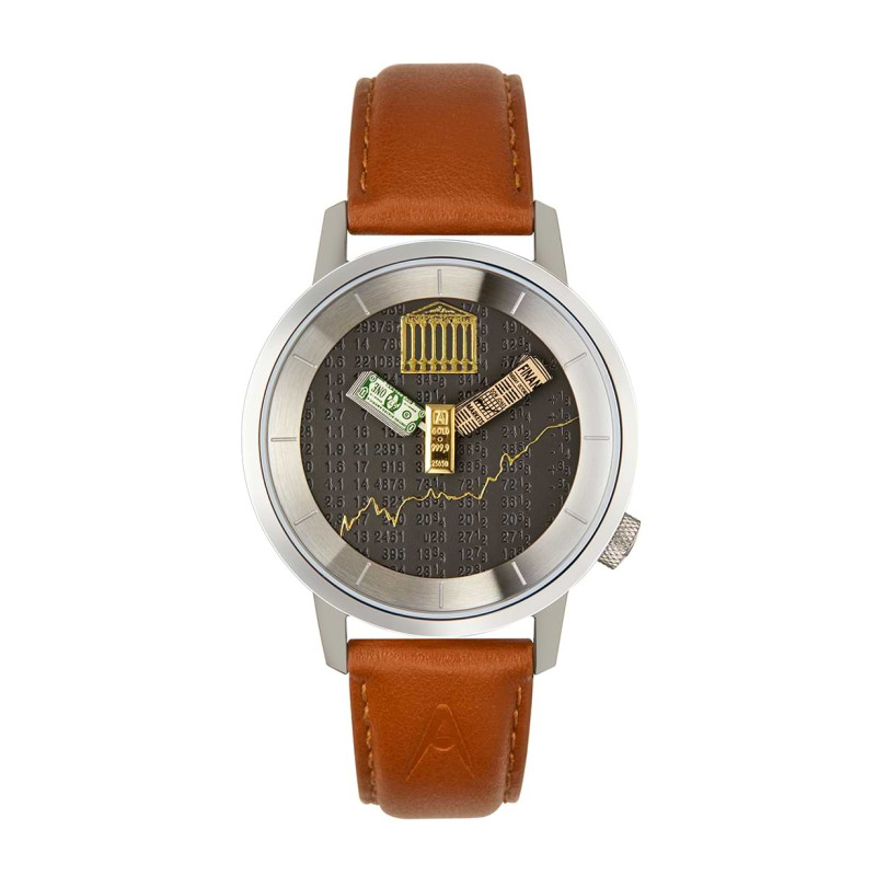 This elegant and original watch will appeal to all stock market enthusiasts, its fluctuations and the whole spirit of finance.