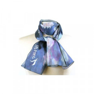 This silk and satin scarf is inspired by Claude Monet's painting intitled "Nymphéas Matin".