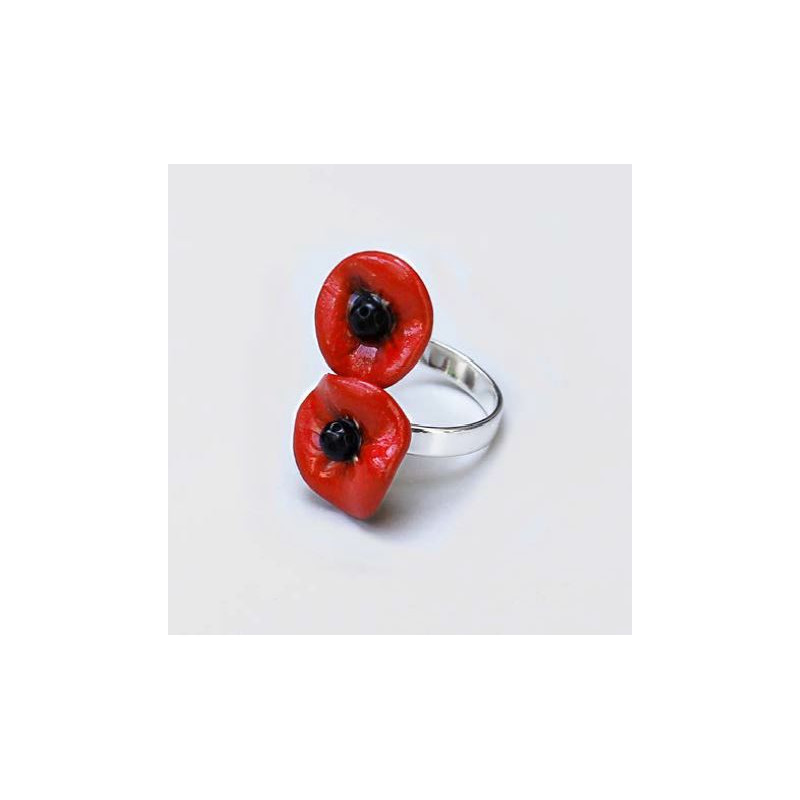 This pretty adjustable ring is inspired by Nature. Handcrafted, these enamelled ceramic poppy and their bright red petals combines delicacy and passion.
