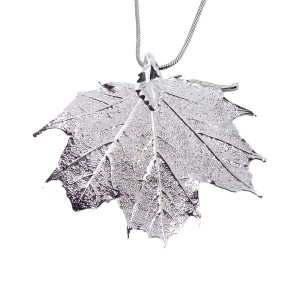 Nature offers this leaf of great finesse, soaked in two layers of copper and then dipped into a fine gold or rhodium silver bath. A adjustable chain is offered with each pendant.