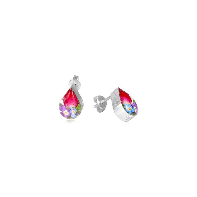 "It all began back in the late 20th century, in a field at the Glastonbury festival. In those days, after a hard nights dancing, we would head to the stone circle to watch the sun rise up over the site. A truly magical experience. After spotting a lone daisy shining out of the green pastures, the spark was born to capture these perfect natural wonders & create beautiful jewellery from them. Those fields do have a lots to answer for! Shrieking Violet jewellery is hand-crafted with sterling silver & tiny little flowers which are encapsulated in resin. Our head gardener keeps a watchful eye on the flowers, tending them with love (& water) until they reach the perfect size. They are then carefully picked, preserved & arranged in to beautiful creations to be worn as jewellery."