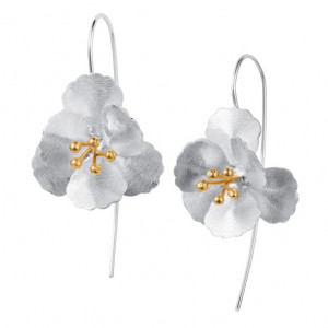 Beautiful sterling silver cherry blossom drop earrings. These lovely cherry blossom hooks have a soft satin finish and delicate gold plated detailing