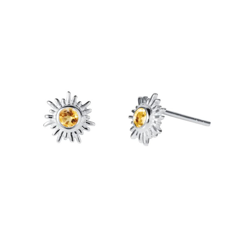 Silver and citrine Sun stud earrings