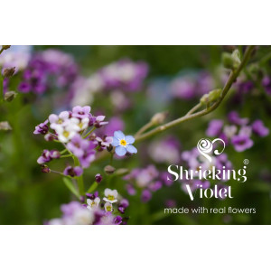 "It all began back in the late 20th century, in a field at the Glastonbury festival. In those days, after a hard nights dancing, we would head to the stone circle to watch the sun rise up over the site. A truly magical experience. After spotting a lone daisy shining out of the green pastures, the spark was born to capture these perfect natural wonders & create beautiful jewellery from them. Those fields do have a lots to answer for! Shrieking Violet jewellery is hand-crafted with sterling silver & tiny little flowers which are encapsulated in resin. Our head gardener keeps a watchful eye on the flowers, tending them with love (& water) until they reach the perfect size. They are then carefully picked, preserved & arranged in to beautiful creations to be worn as jewellery."