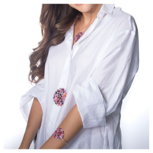 The freshness of a bouquet of spring flowers in a jewel! With its harmonious mix of flowers in purple tones, this pretty bracelet will sublimate and bring pep to any outfit, including the most sophisticated ones!