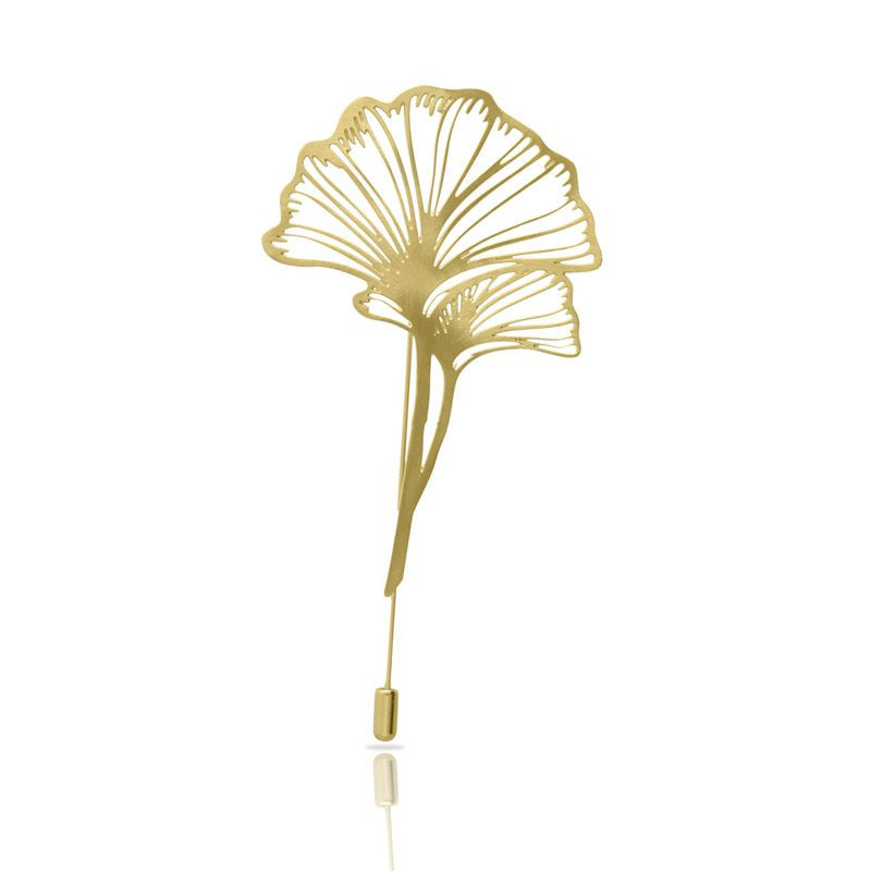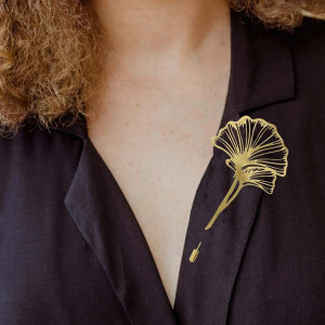 Ginkgo biloba is one of the oldest trees in the world. It is renowned for the medicinal use of its leaves. They are symbols of energy and long life. With a finely openworked pendant, light, fine and delicate, this pin is perfect for every occasion.