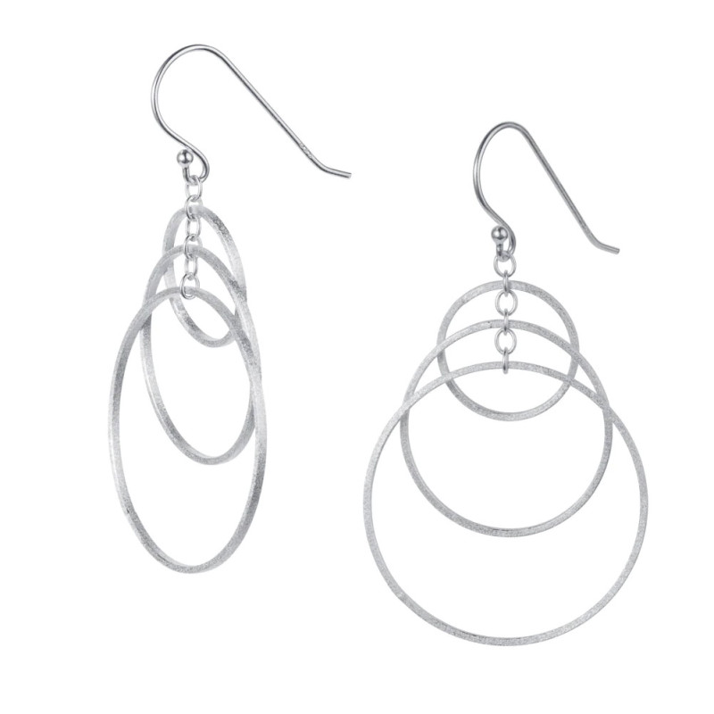 Elegant earrings, in solid silver with a satin finish. These three rings stacked from smallest to largest offer an easy-to-wear design, both in the evening and during the day.