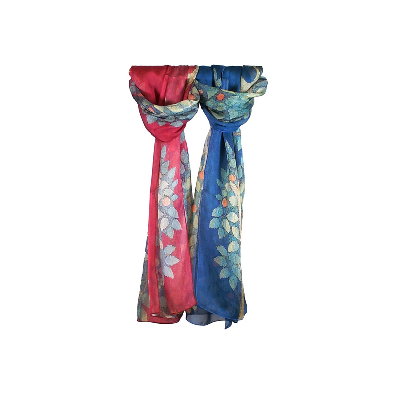 This silk scarf is inspired by a detail of one of the six panels forming the Apocalypse Tapestry of Angers, woven at the end of the 14th century by Nicolas Bataille, based on the cartoons of Hennequin of Bruges, for the Duke Louis 1st of Anjou.