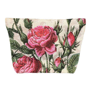 A very elegant and refined small purse, whose fabric was made in the traditional way on a jacquard loom. On the back, a pretty bouquet of roses and buds. On the front, a more minimalist decoration with a single rose that reveals the beige background in baroque style. This case can be used to store your makeup or some personal effects. Its size is ideal and it goes easily into your handbag.