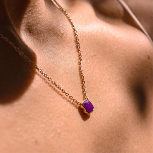 For those born in February, this birthstone necklace features purple sugilite which symbolizes creativity and self-realization.