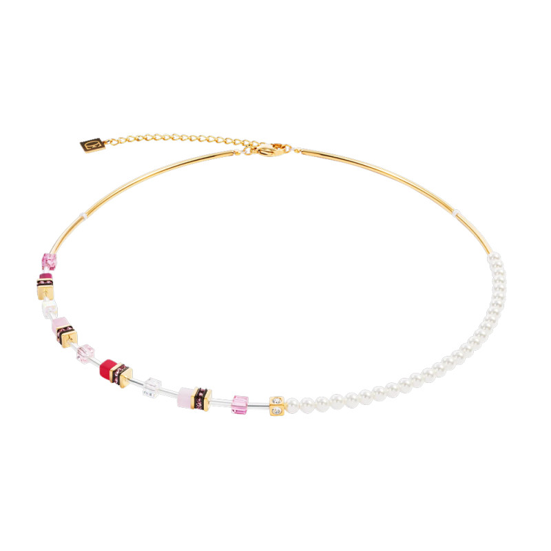 Mixed Cube Pearl Necklace - pink and fuchsia