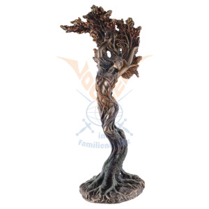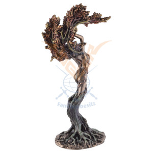 A dryad or nymph, a divine figure associated with trees and the forest. This poetic statuette depicts a woman at one with the tree, from roots to crown. The details are entirely hand-painted and feature autumnal colors.