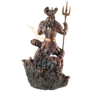 Hand-painted statuette of Poseidon, god of the seas and earthquakes in Greek mythology. Son of Kronos and brother of Zeus and Hades, he inherited the kingdom of the oceans after their father's fall. Armed with his trident, Poseidon embodies the brute force and instability of the elements. His fierce gaze and deep colors recall his violent temperament and divine power. A unique piece, a tribute to the land and sea roots of the master of the abyss.