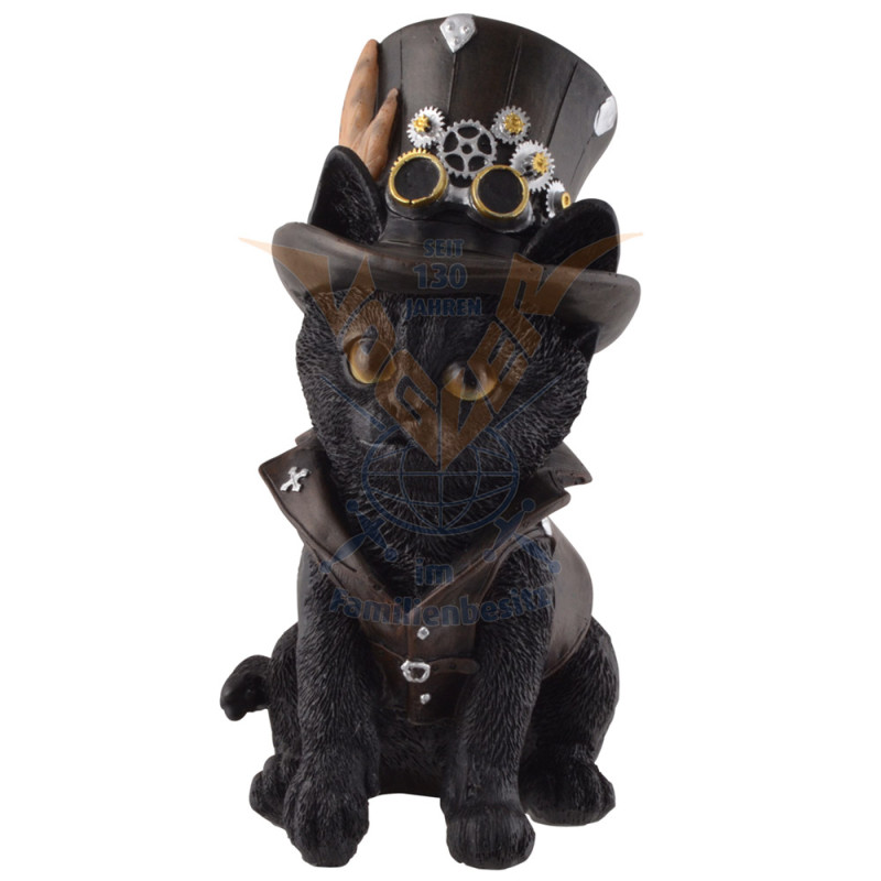Steampunk black cat statuette