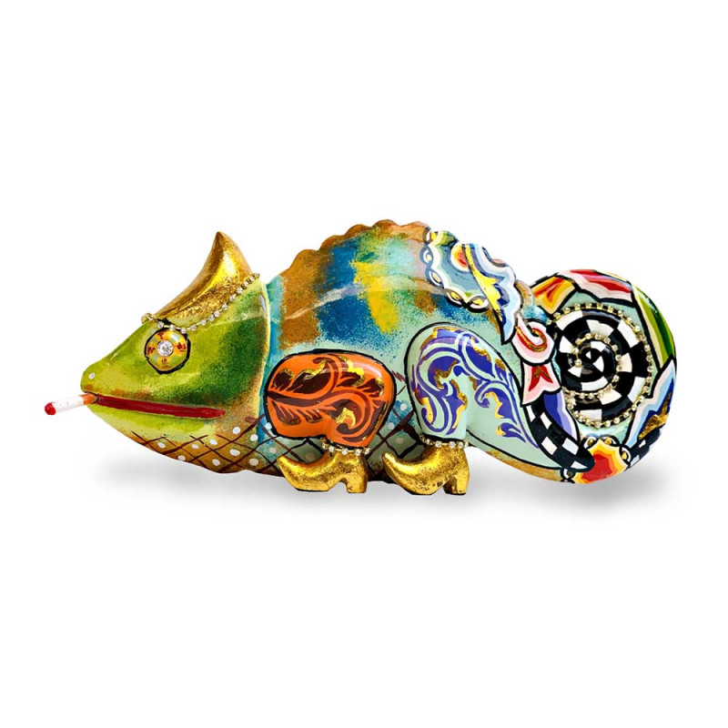 A chameleon knows how to blend in, but with such shimmering colors, will be succeed in blending delicately in your living room ?