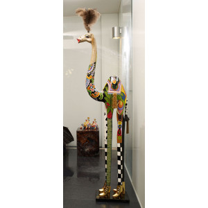 This large sculpture will bring fun and joy to your interior! With its 100% assumed quirky side, it will charm you. Entirely hand painted - Has multiple accessories (necklace, earrings, feathers, pompoms...) - Very meticulous craftsmanship