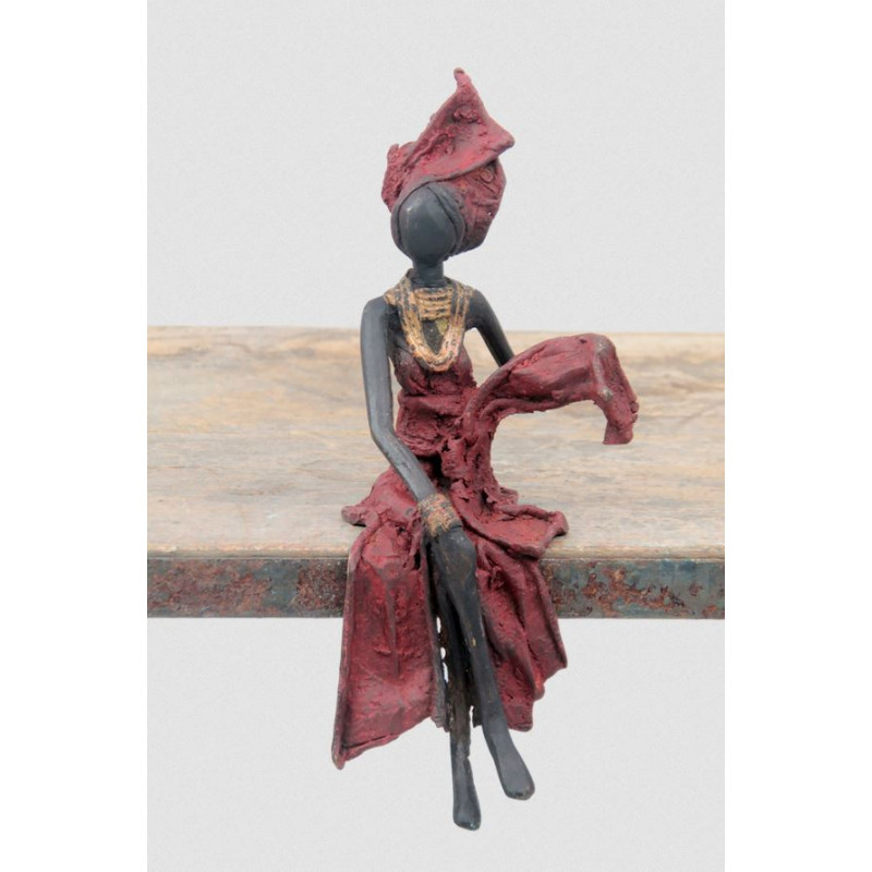Shelf bronze sculpture by Issouf - 20 cm - Red