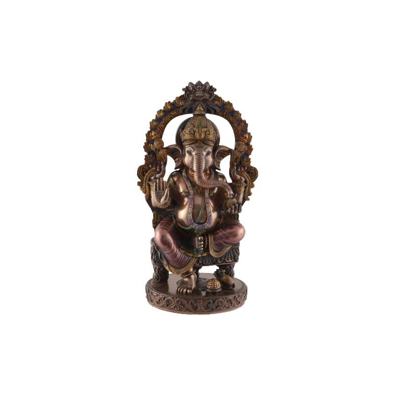 Detailed Ganesh statuette, made with a bronze patina. Ganesh is the God of wisdom, intelligence, education and prudence. We can recognize him by his elephant head. He is the most revered God in Asia.