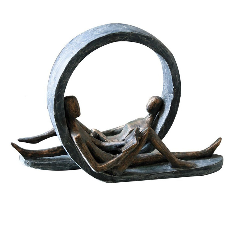 A sculpture in the shape of a spiral with two characters with modern lines. Suitable for all interiors, whether your decor is modern, classic or traditional. The patinated bronze appearance combined with clean lines gives it elegance and contemporary style.