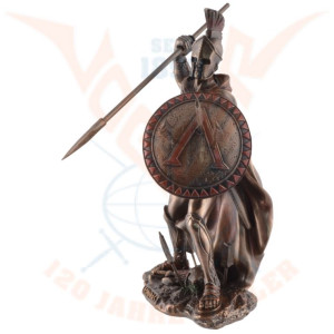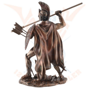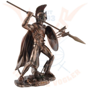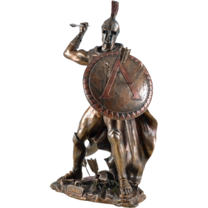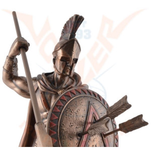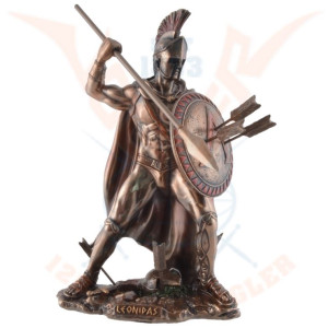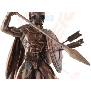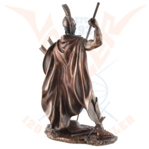 Statuette of Leonidas made with bronze pigments. He is equipped with a spear and a shield which protects him during battle. Leonidas was an Agiade king of Sparta from 489 to 480 BC. He is known for his heroic opposition against the Persians during the Battle of Thermopylae, during which he died.