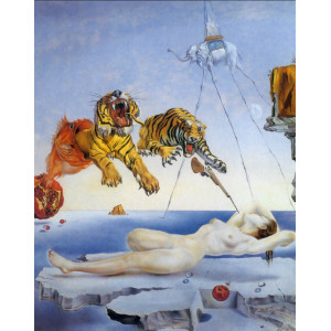 Based on "Dream Caused by the Flight of a Bee around a Pomegranate a Second before Awakening", painting by Dalí.