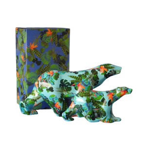 The pattern is applied to the statuettes with an innovative technique: A thin film featuring the pattern is placed in a water bath, after which the film is dissolved with a product, leaving only the ink floating on the water. When the statuette is immersed in the bath, the ink envelops it. After the drying process, the sculpture is varnished, provided with felt pads and an underprint. All copies are unique, you will not find two identical! It's a long and painstaking job, but it's definitely worth it!