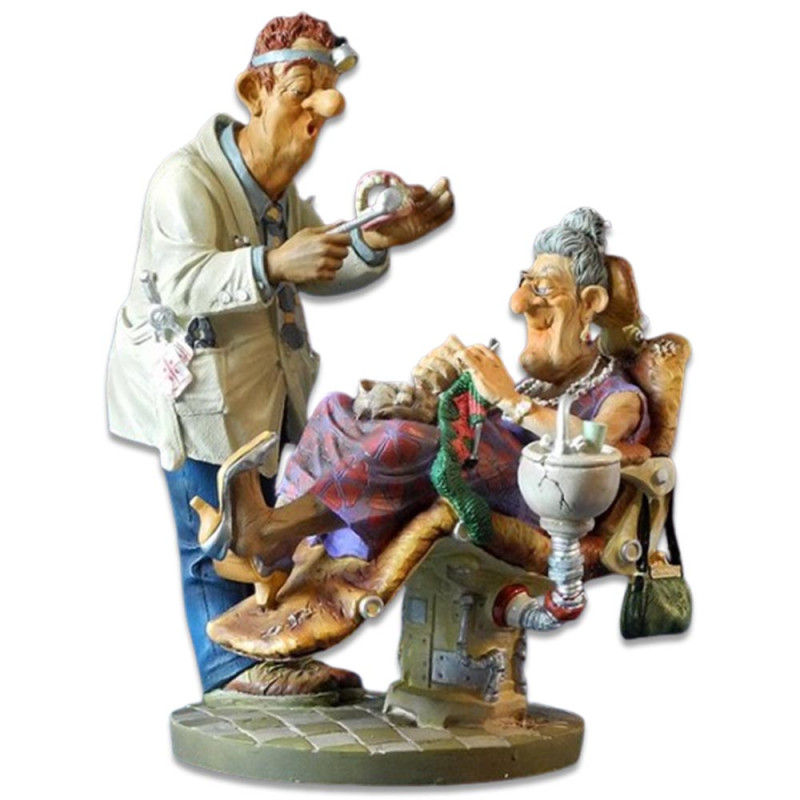 The Dentist figurine is a caricatured representation of the profession. The two artists, Fons van Dommelen and Ed van Rosmalen, transport you into the world of odontology with a humorous look. Come and discover the details and precision of their inspiring know-how.