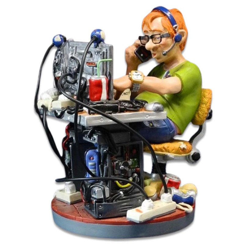 The Computer Programmer figurine stands out for its originality and the multitude of details sculpted and then hand-painted. It contains all the necessary paraphernalia for computer enthusiasts. This figurine represents a resin diver, interpreted with the caricatured look of the two creators. It is an original creation by the Dutch artists Fons van Dommelen and Ed van Rosmalen, from the Profisti workshop.