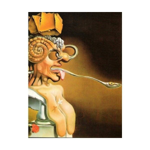 A neo-classical portrait filled with alienating Dali-symbolism. Salvador Dali is the greatest amongst the surrealists sublimating his life in his art of painting and striving to capture his subconscious in images.