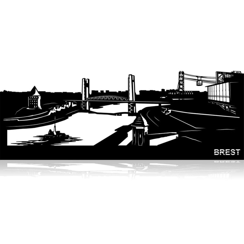 This wall decoration in cut metal, which reproduces the lines of the city of Brest (Brittany), reveals beautiful shadow plays. It offers a beautiful imaginary view where emblematic monuments of the city are harmoniously grouped.