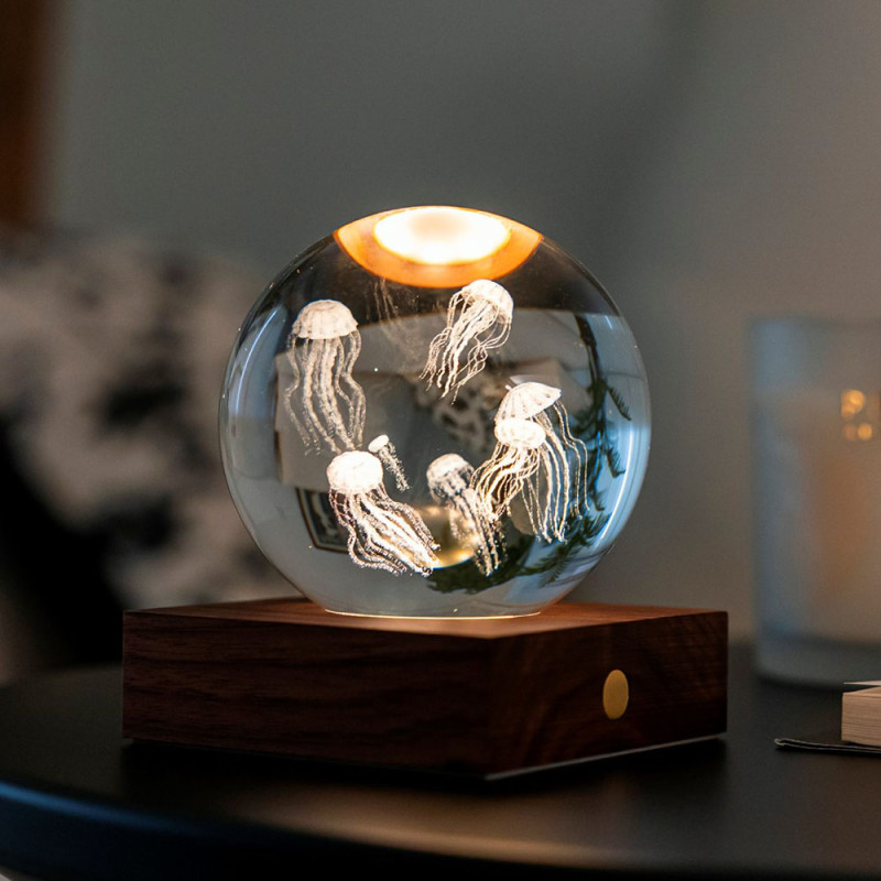 Dive into the captivating beauty of the ocean depths with this crystal ball-engraved design of majestic jellyfish. This decorative object captures the graceful, airy movements of the jellyfish, symbolizing the tranquility and mysteries of the ocean.