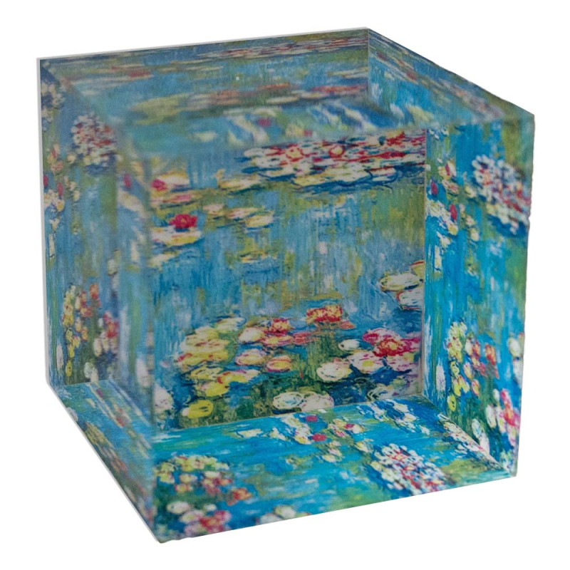 These decorative cubes are eye-catching and create a stunning interplay of color and depth. They are perfect for any desk or as an elegant display piece in a cabinet. The paperweights feature several masterpieces by world-renowned artists, a subtle tribute to art history.