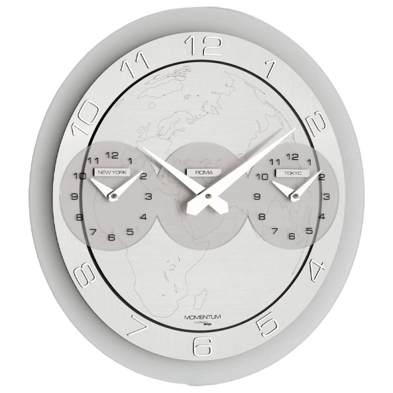 Momentum Three Hours clock is the same version as Momentum with the engraving of the world map and the particular insertion of three different hours in the world. Perfect for the travellers or for those dreaming of great travels.