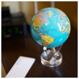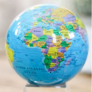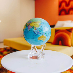 The Blue & Political Map Mova globe is a classic globe format that is a perfect blend of knowledge, style and adventure. The map is given a decorative edge with a tropical turquoise ocean backdrop and a vibrant palette of colors to identify and outline the various countries of the world.