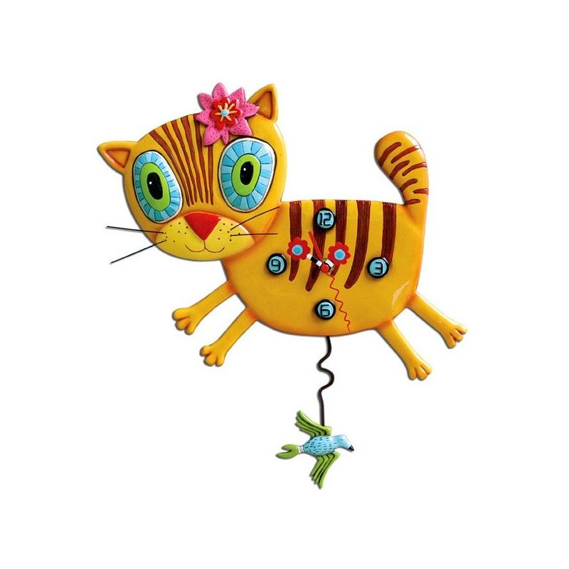 This wall clock in the shape of a cat will brighten up an entire room! Colors, shape, details and originality make this pendulum clock a very unique creation!