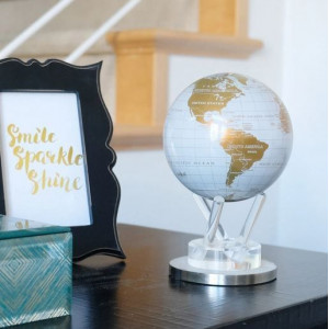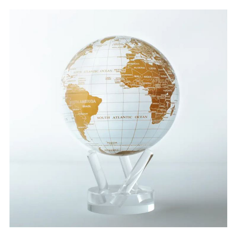 If luxury is your style, this Mova globe design is sure to please. The White & gold Mova globe brings a contemporary, clean-cut feel to the traditional globe design. Its sleek design perfectly fits the decorative trend.