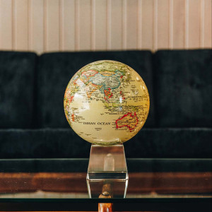 The Antique yellow map Mova globe is one of the most popular model, boasting classic elegance and refined taste. Countries on the vintage-inspired map are exquisitely defined with a warm palette of colors that pop out against the pale but comforting yellow hues, providing an instant warmth to any room or office.