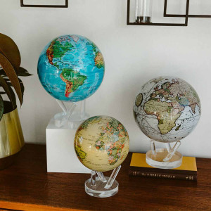 MOVA globes are luxurious, eco-friendly décor items that channel energy from ambient light and the earth’s magnetic field to rotate continuously on their own. From the hidden motion mechanism and cordless, battery-free operation to the high-quality materials and thoughtful aesthetics, MOVA exclusive and handmade creations strike a refined balance between precision technology and upscale artistic design. Expertly crafted to simulate perpetual motion, the globe comes to life in ambient light, providing therapeutic calm with its silent rotation and adding interest to any space with its dynamic balance of classic form and contemporary style. The MOVA Globe reinvents the very idea of a globe, offering a beautiful way to ignite the imagination and bring valuable serenity into the home.