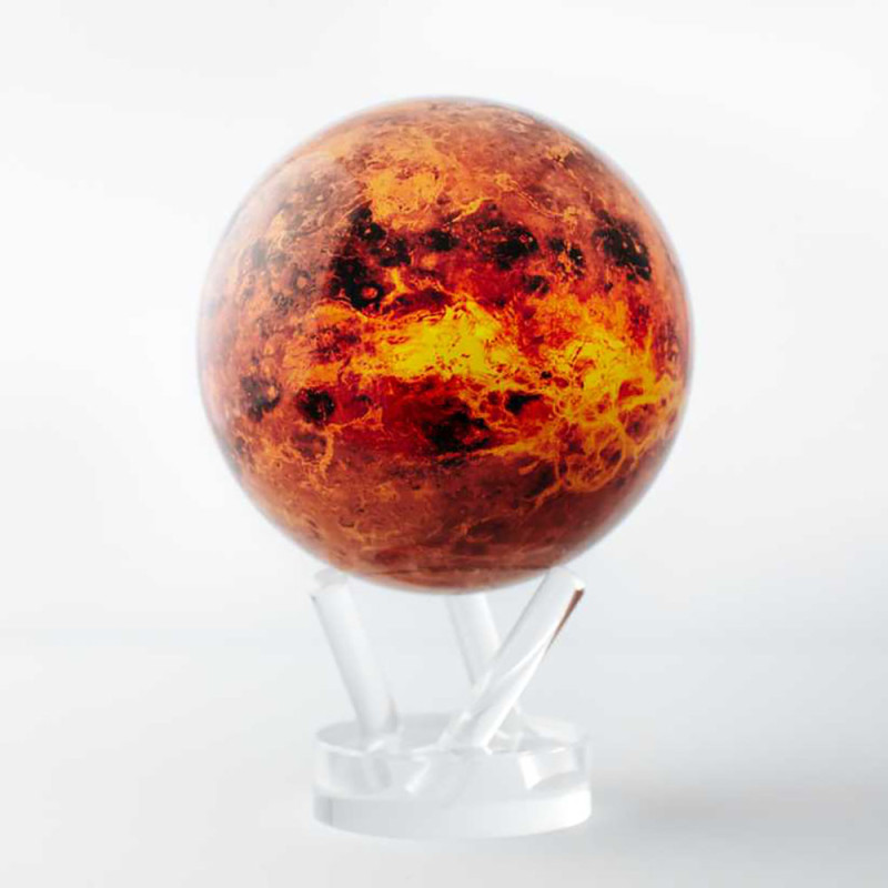 Venus is the second planet from the sun and although referred to as Earth’s sister, is radically different in its landscape and geography. Represented as a globe with fiery flares of red and orange, the Venus Mova globe is a stunning recreation of the scorching planet and an impressively emphatic decor piece.