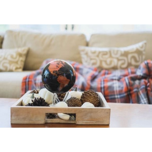 The Black & copper Mova globe is designed with a vivid contrast between the warm copper land masses and the deep black oceans, making a contemporary look.