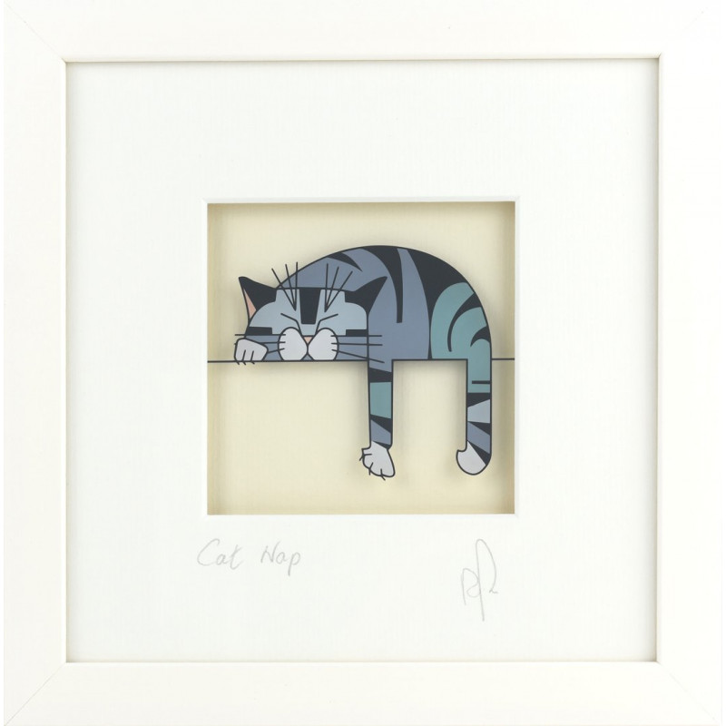 Titled in french ("Une vie de chat") and signed by the artist. Framed in a limed box frame with hanger.